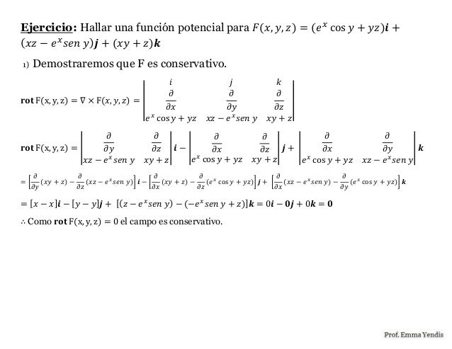 • Si F(x,y,z) es un campo vectorial conservativo entonces rot (F) = 0